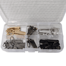 5 Stuks luxe zippers in 5 kleuren, compleet in assortimentsdoosje.